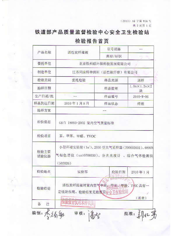 質(zhì)量檢測報告